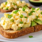 Assemble: Toast the slices of sourdough bread to golden perfection. Arrange avocado slices atop each piece of toast, then spoon the creamy egg salad generously on top.